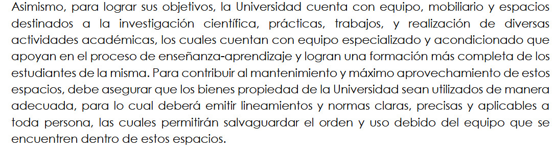 El reglamento explícitamente señala que la universidad se compromete a ofrecer todos los servicios necesarios para que las clases se lleven a cabo. Esto incluso es parte del reglamento académico.